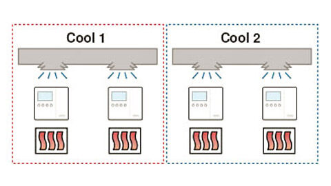 In most hydronic systems there are several heating zones within one cooling zone. Until now, unfortunately, the cooling system was not integrated with the heating system so there were conflicts between the heating and cooling operation. tekmarNet®4 communication allows the heating zones to be associated to the cooling zone. Cooling and heating operation can now be integrated in order to prevent simultaneous heating and cooling within the same zone.