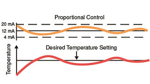 A modulating output provides a signal which is directly proportional to the actuator position required by the control. Common modulating output signals are a 4-20 mA, 0-135 Ω, or 2-10 V (dc). These signals can also be used to modulate the speed of an injection pump through a motor speed controller.