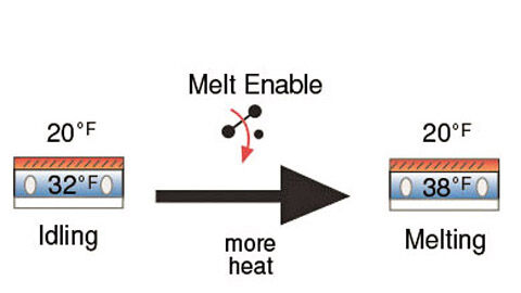 In systems where snow and ice removal is critical, such as hospital ramps, the pick up time for a snow melting slab can be reduced by maintaining the slab at an idling temperature. The idling temperature may be just below the freezing point. When snow melting is required, the slab temperature is increased.