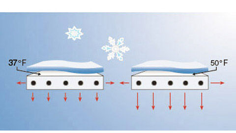 Snow and ice detection is used to automatically start and stop a snow melting system. When there is snow on the sensor, the sensor melts the snow and ice, detects the moisture and allows the control to start the melting process. This prevents accumulation of snow on the slab and provides a faster response. Automatic snow and ice detection is safer, more convenient and consumes less energy than manual systems.
