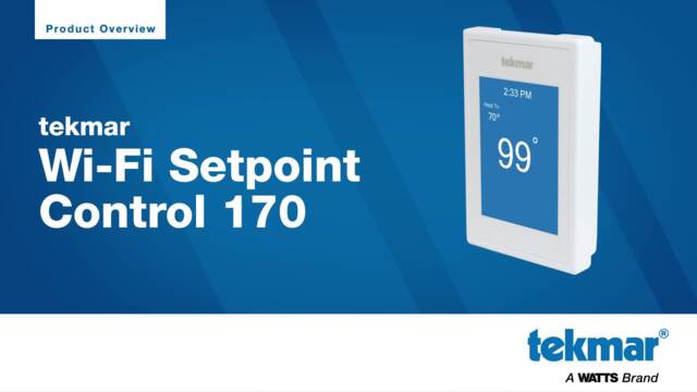 The Wi-Fi Setpoint Control 170 provides precise temperature control of a one-stage heating or cooling system. When connected to the Internet, the Watts(R) Home mobile app allows the setpoint control to be controlled remotely. An Away mode is quickly and easily accessed to provide energy savings when the heating or cooling system is unoccupied. The setpoint control can be used to control the heat for an indirect domestic hot water tank, a pool, a hot tub, or small outdoor patio, as well as provide cooling for a wine cellar.