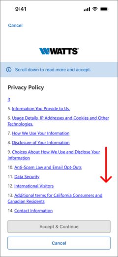 - Scroll through the Privacy Policy and select "Accept & Continue" button