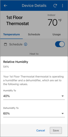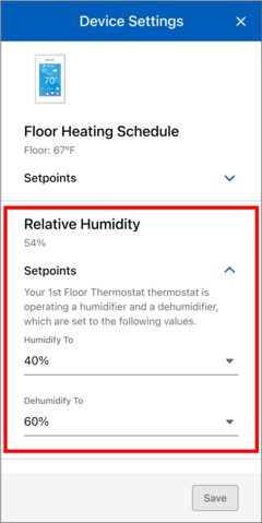 - Make the necessary adjustments to the Humidity settings on the Device Details bottom menu