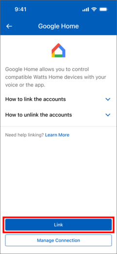 a. How to link Watts Home account to Google Home