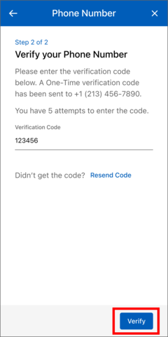 - Enter the 6-digit verification code and select "Verify" button