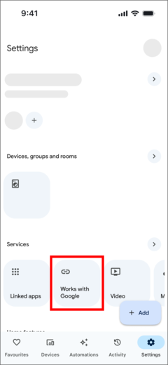 - On the Google Home app navigate to Settings, then select "Works with Google" under Services