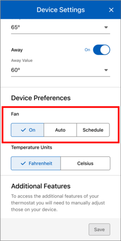 - Select the "Fan" button on the Device Details page