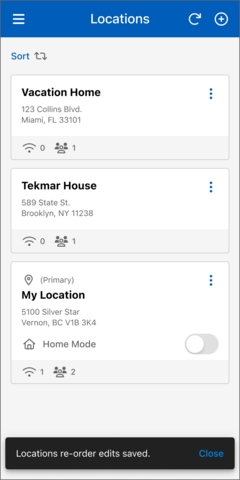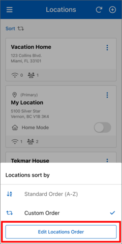 - On the "Edit Locations Order" page to move a location tile, press and hold until it changes color, then drag and drop it to your desired destination. Alternatively, you can use the arrow icons to move it up or down.
